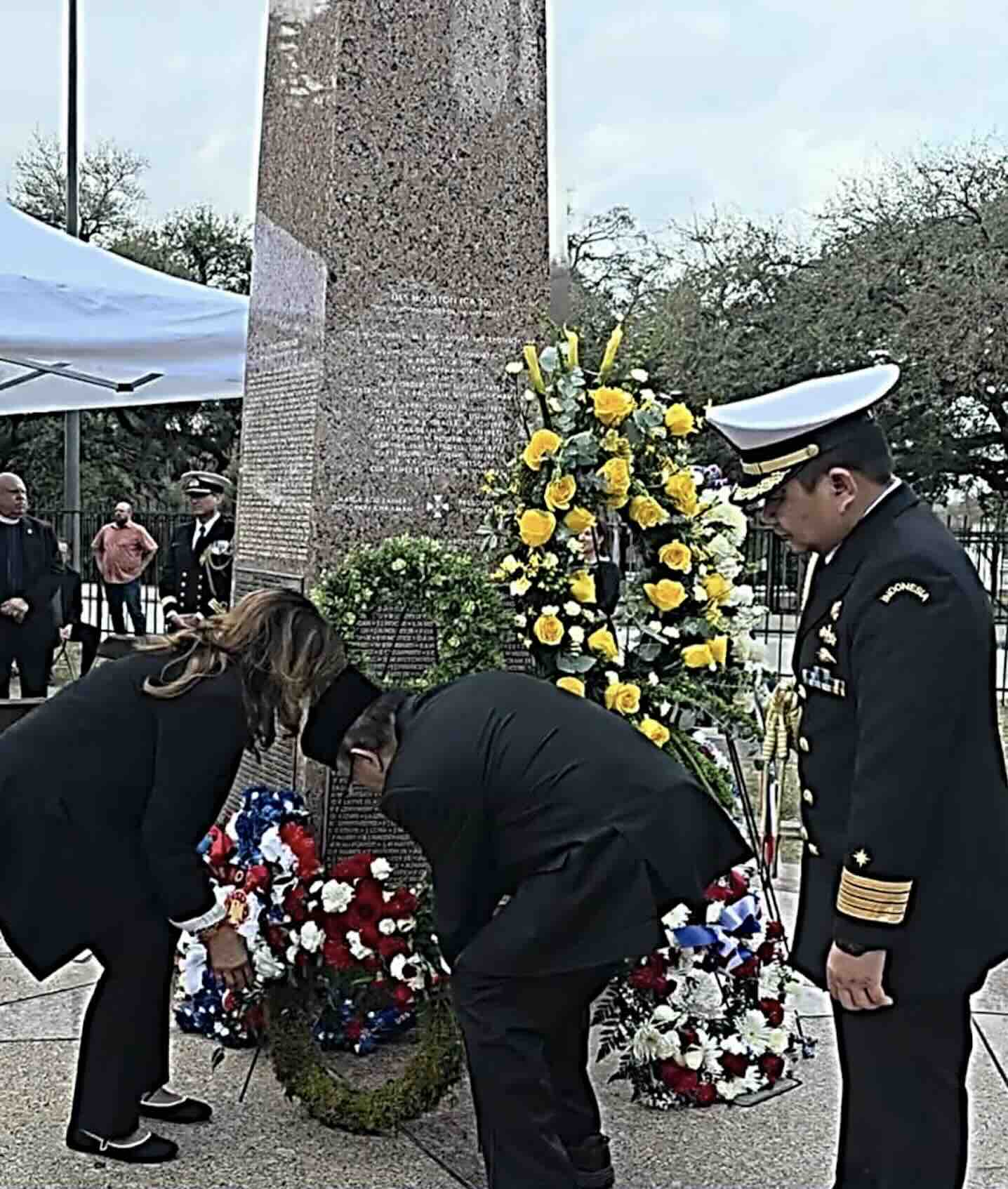 Hadir pada peringatan tenggelamnya USS Houston di kota Houston tadi, antara lain, Konjen RI di Houston, Ourina Ritonga, Atase Angkatan Laut RI, Kolonel Yudi Ardian, Executive Director of USS Houston CA-30 Survivors Association and Next Generation. Mr. John K.Schwarz, para isteri, anak dan cucu awak USS Houston, serta perwakilan dari  negara-negara Australia, Inggris, dan Belanda, para veteran perang dunia II dan para kadet Akademi AL.